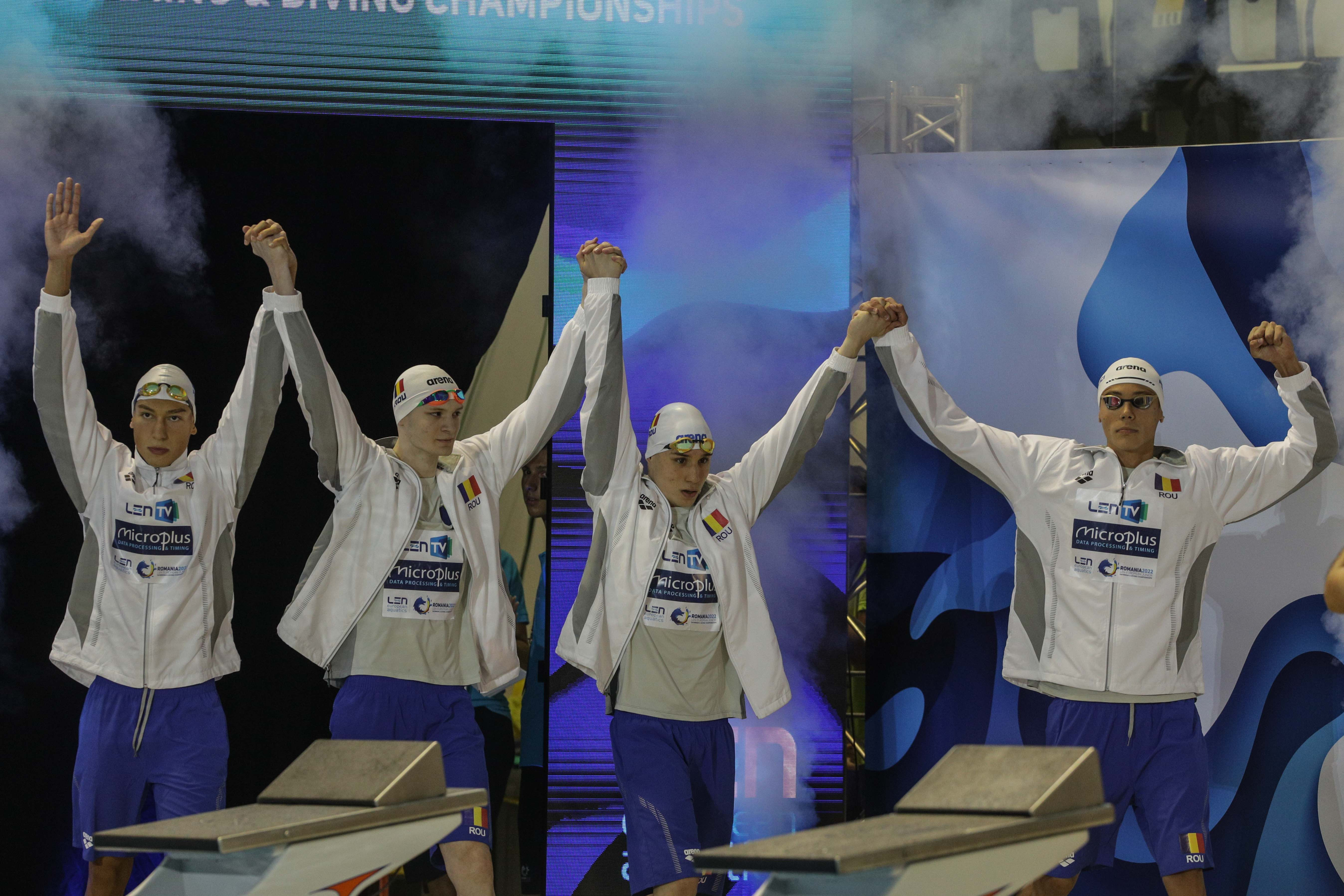 Ştafetă combinată a României, compusă din David Popovici, Patrick Sebastian Dinu, ...