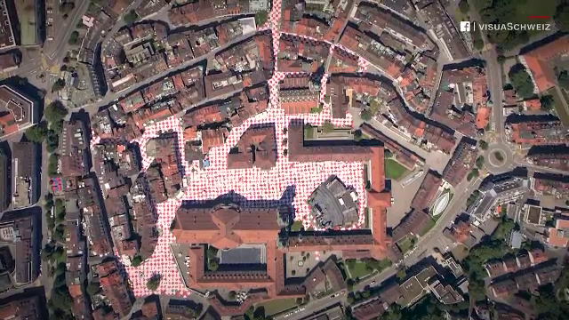 Mii de pături alb-roşii au acoperit zona centrală a unui oraș din Elveţia.