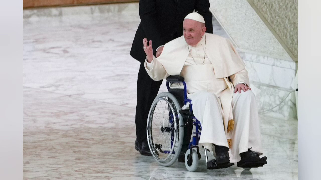 Papa Francisc a apărut, pentru prima dată în public, într-un scaun cu rotile.