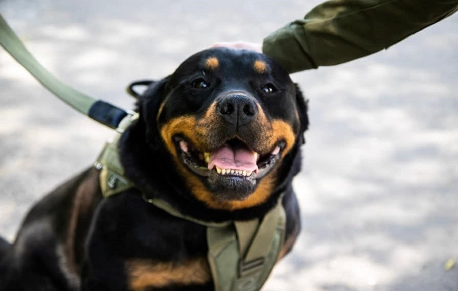 Rottweilerul Gabriella se în serviciu la un punct de control din Kiev și asigură ...
