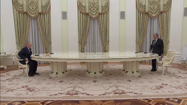 Primit la Kremlin, unde încearca să găsescă o cale către pace, secretarul general ...