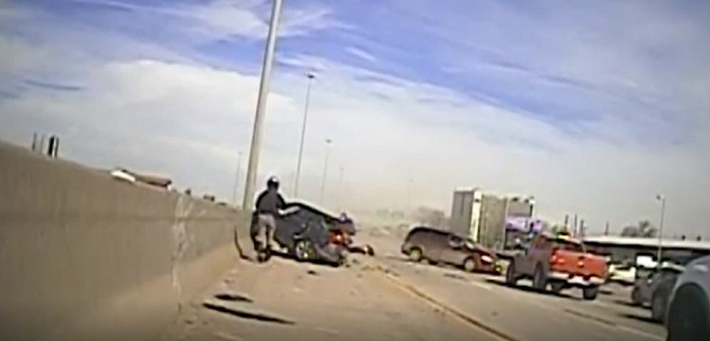 Un accident rutier spectaculos se putea încheia cu o tragedie, pentru un polițist ...