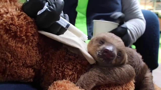 Un pui de leneș în vârstă de doar o lună a ajuns vedeta unui sanctuar pentru ...