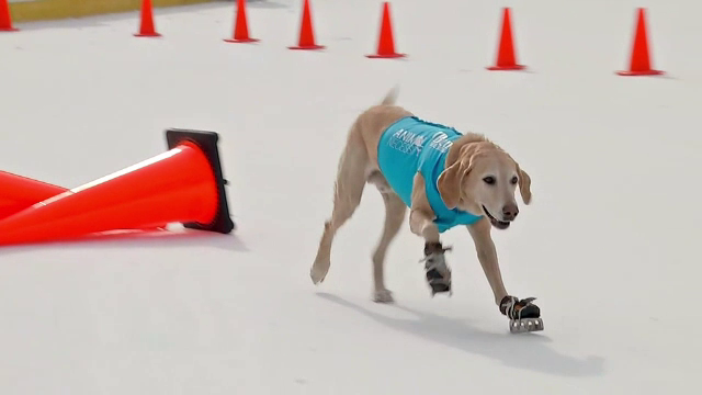Un cățel plin de energie a fost principala atracție pe un patinoar din faimosul Central ...
