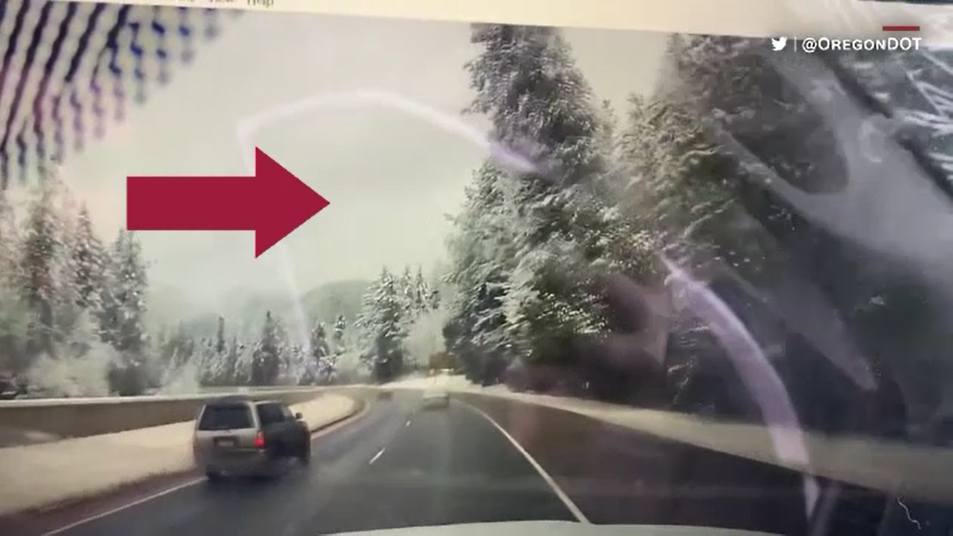 Un șofer din Statele Unite a scăpat nevătămat după ce un brad înalt, încărcat ...