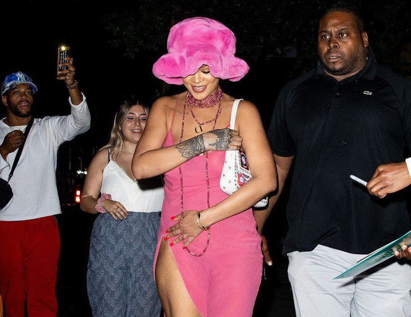 Cum s-a imbracat Rihanna la intalnire cu iubitul. Nu a purtat sutien pe sub rochia roz ...