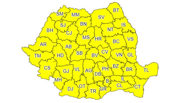 ANM a emis vineri o nouă atenţionare Cod galben de ploi torenţiale, descărcări electrice, ...