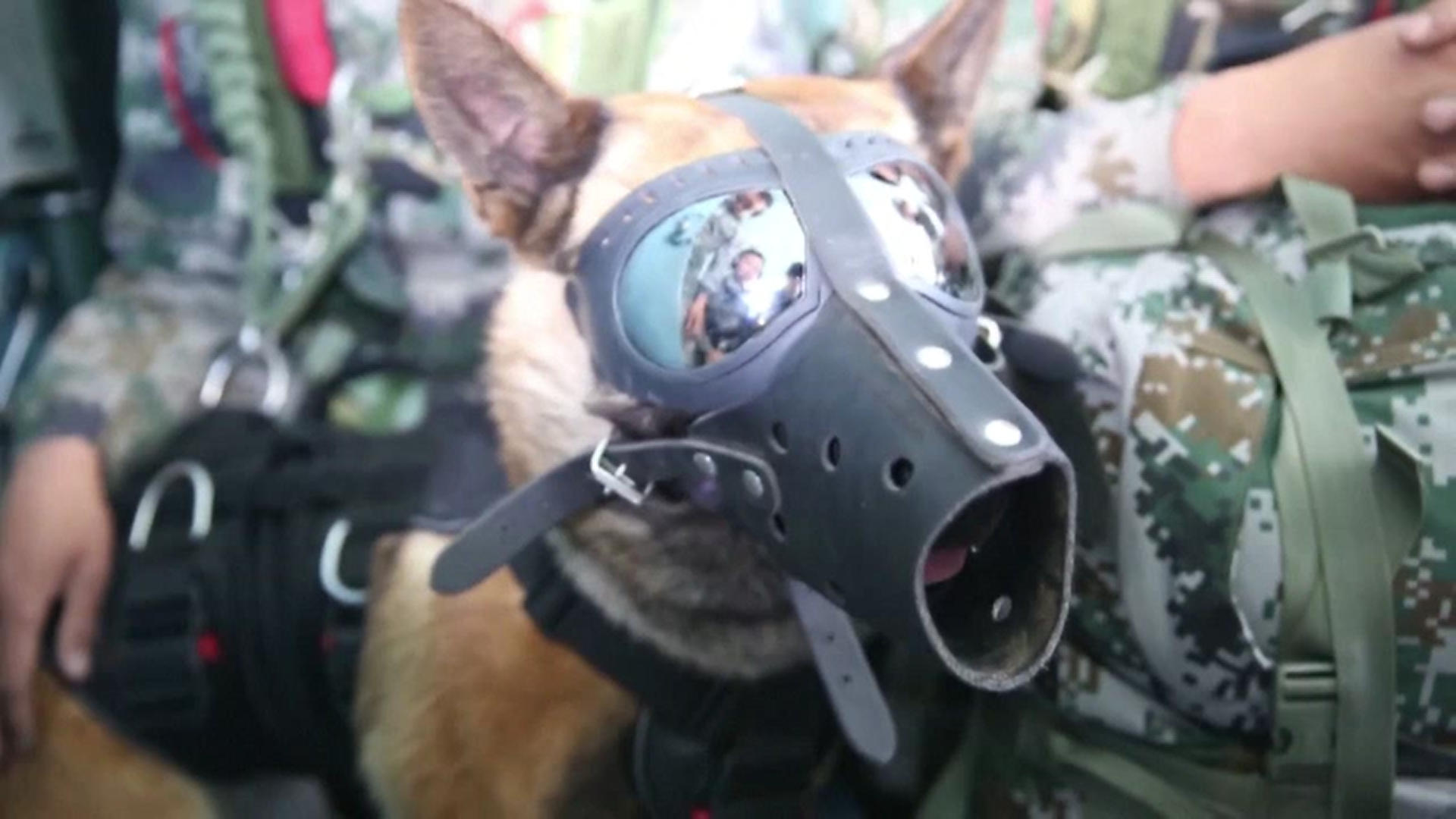 Un câine militar din China, înrolat la trupele speciale, a efectuat primul ...