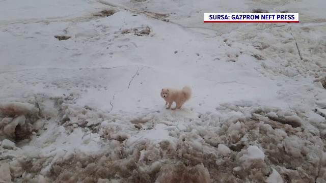 Echipajul unui spărgător de gheaţă a salvat un câine care rătăcea de zile bune ...