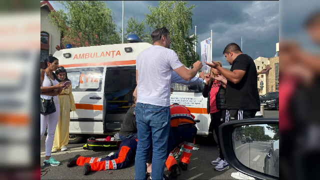 O ambulanță a fost lovită de un autoturism pe o șosea din București.