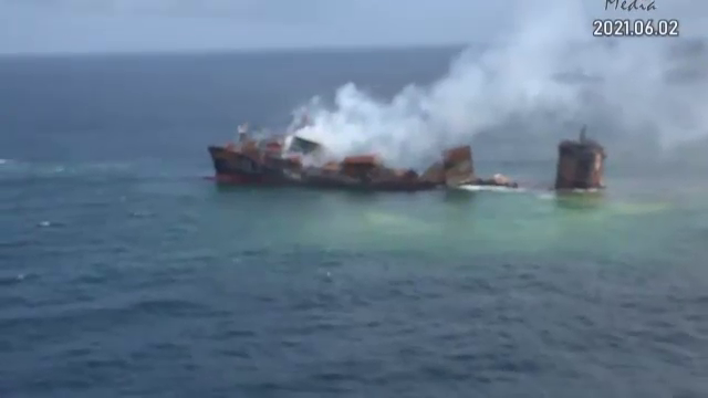 O navă încărcată cu acid azotic, etanol și sodă caustică, care a luat foc în ...