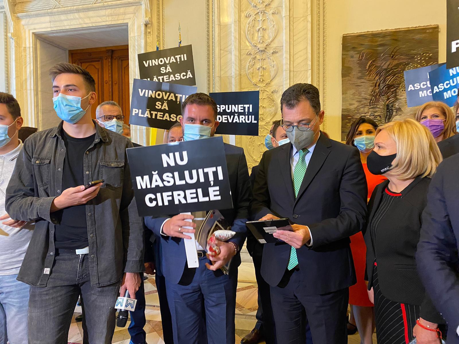Senatorii și deputații PSD au organizat un protest, marți, pe holurile Parlamentului, ...
