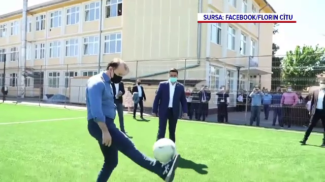 Aflat în vizită la Satu Mare, premierul Florin Cîțu s-a oprit la... fotbal.