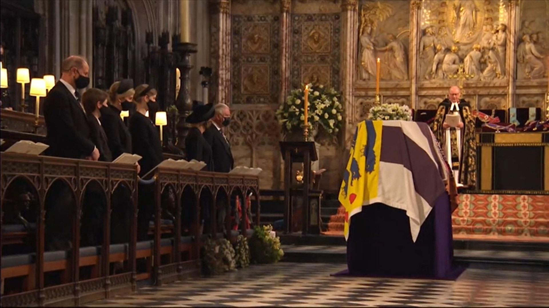 Sicriul purtând trupul neînsufleţit al Prinţului Philip a fost coborât, ...