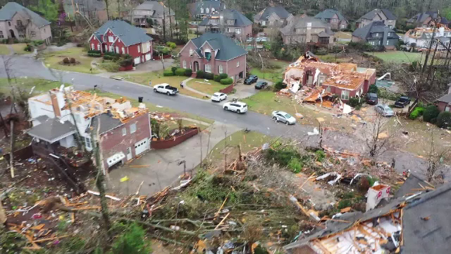 O tornadă care s-a năpustit peste o zonă rezidențială din Alabama a distrus case și a ...