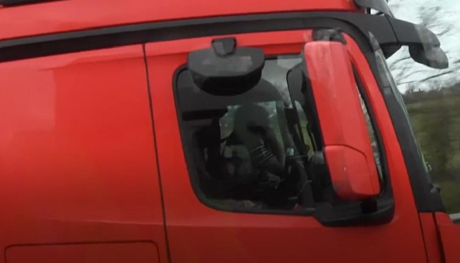 VIDEO. Șofer de camion surprins în timp ce vorbea la două telefoane, fără să țină vreo mână pe volan