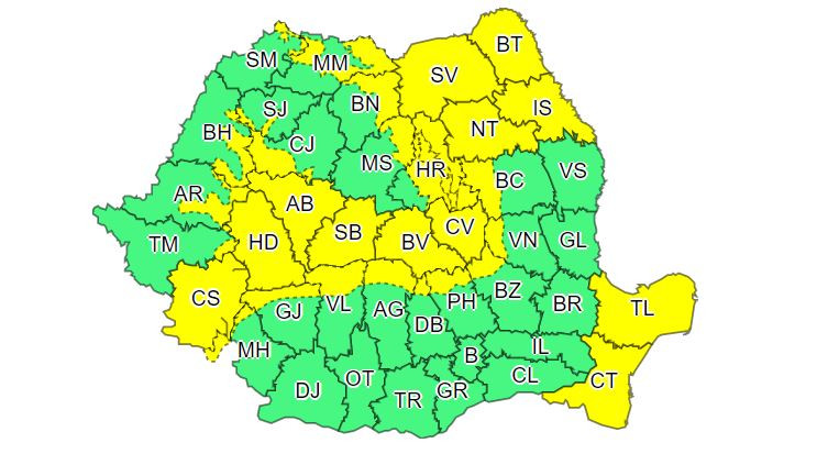 Administraţia Naţională de Meteorologie (ANM) a emis, luni, noi avertizări Cod galben de ...