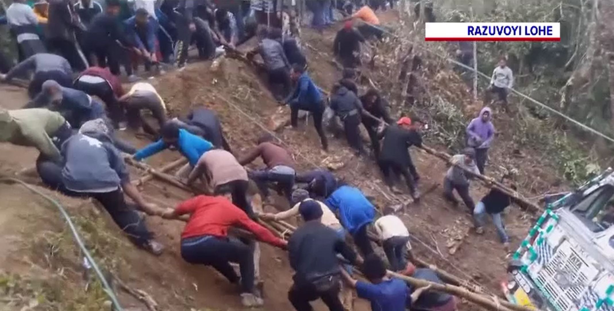 Operațiune de salvare inedită în India. Cum a fost scos un camion dintr-o râpă