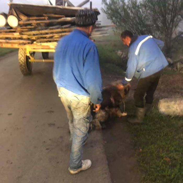 Un câine legat de o remorcă, în pericol de moarte, a fost salvat de un fost ...