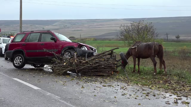 Doi oameni care se aflau într-o căruţă au fost răniţi într-un grav accident, ...