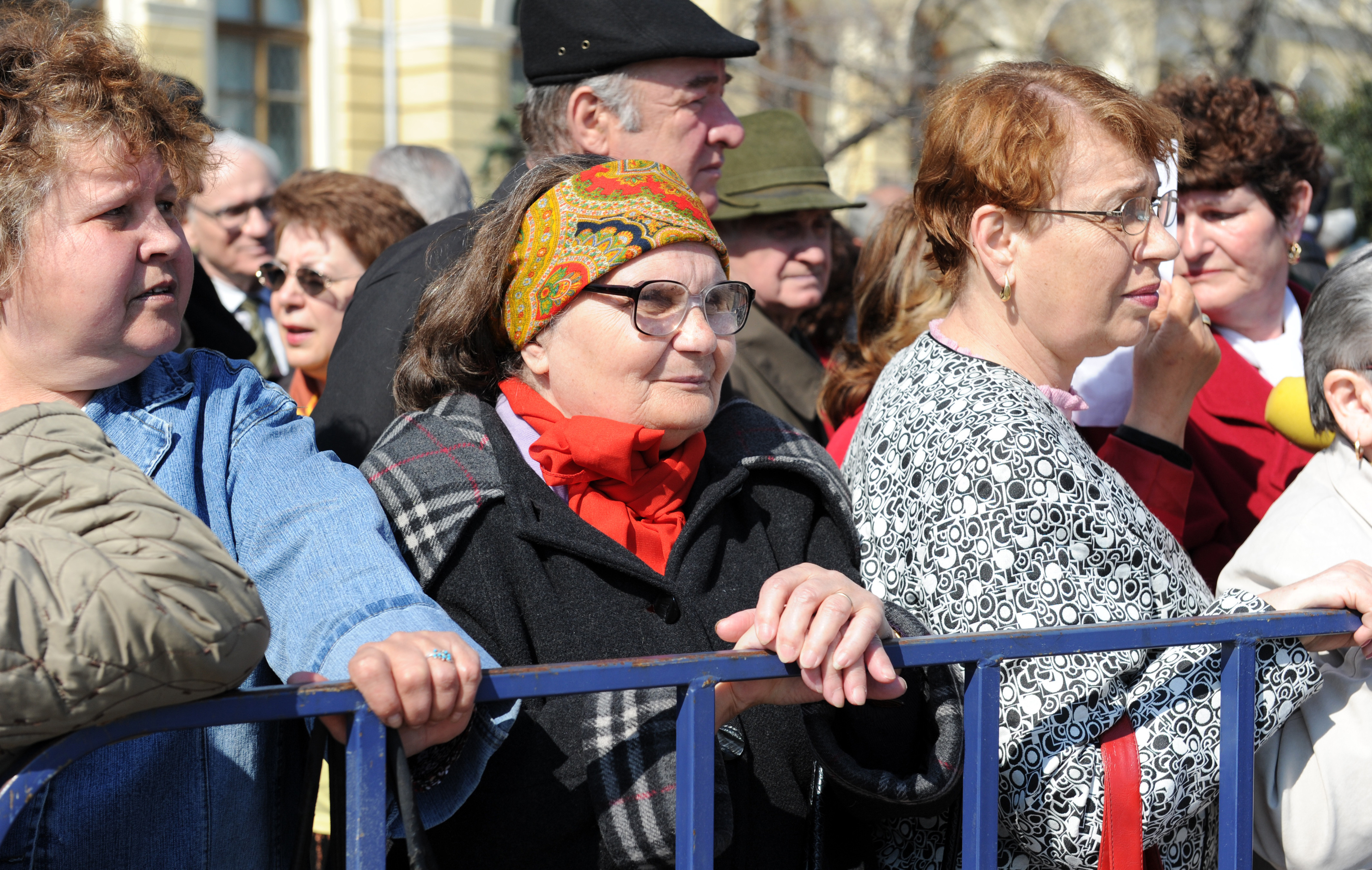 Participanţii prezenţi la înmormântarea unei persoane din Roşiorii de Vede, ...