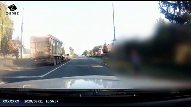 O femeie şi un copil au fost la un pas de a fi spulberaţi de un camion pe o trecere ...