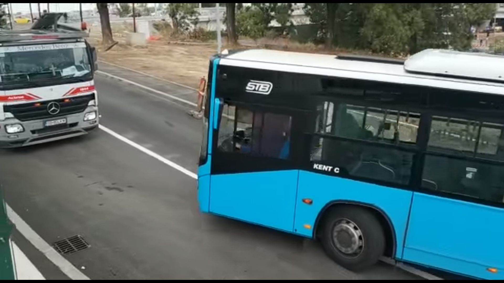 O înregistrare cu un autobuz STB și un camion care nu au loc să treacă în ...