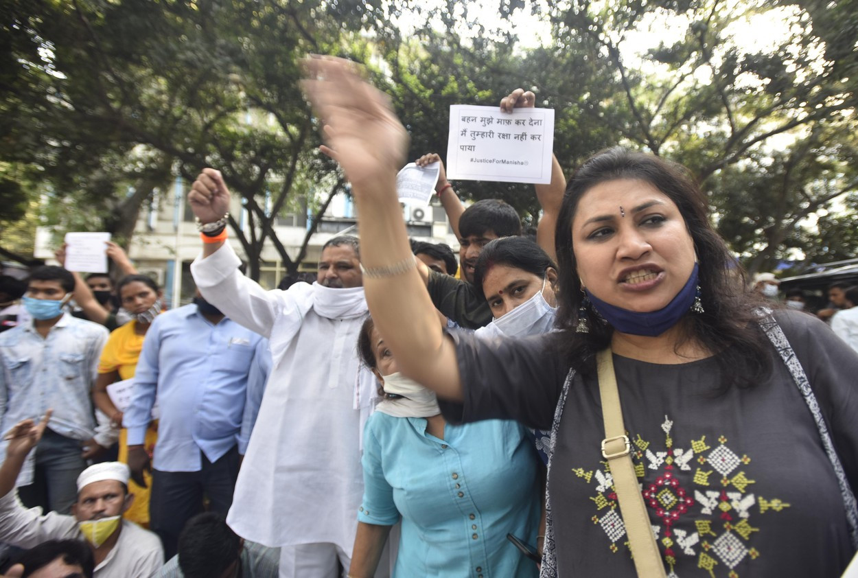 Familia unei tinere din comunitatea Dalit, din nordul Indiei, care a murit marți după ce ...