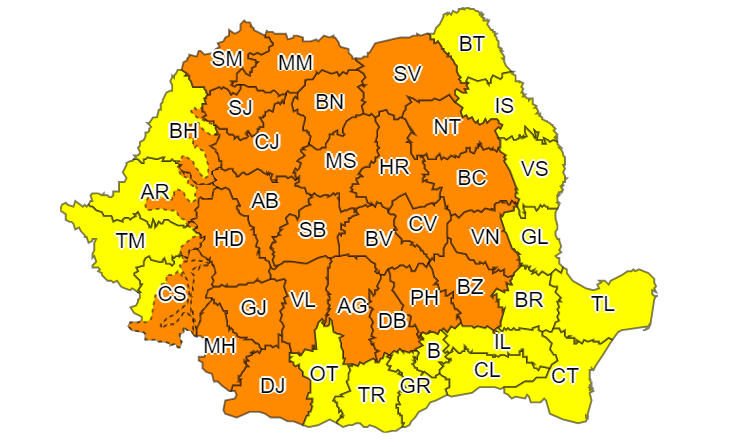 Administraţia Naţională de Meteorologie a extins sâmbătă Codul portocaliu de ploi ...