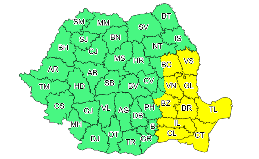 Administraţia Naţională de Meteorologie (ANM) a emis joi o atenţionare Cod galben de ...