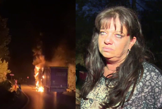Un TIR a fost cuprins de flăcări uriașe, joi dimineață, pe Drumul Naţional 72, ...