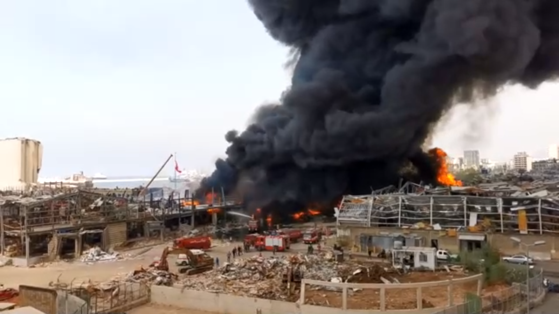 Un depozit de ulei pentru motor şi cauciucuri aflat în portul din Beirut a luat foc ...