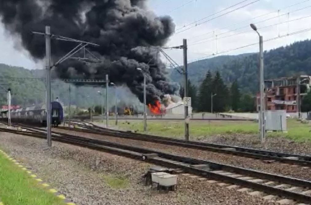 Flăcări uriaşe au cuprins marți dimineaţă un service-auto din Buşteni, chiar în ...