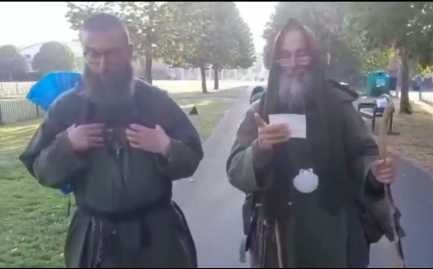 Doi călugări italieni merg pe jos într-un pelerinaj, din Londra până în ...