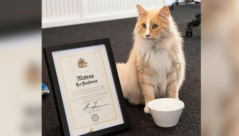 Motanul Mittens, o felină foarte populară în capitala Noii Zeelande, Wellington, ...