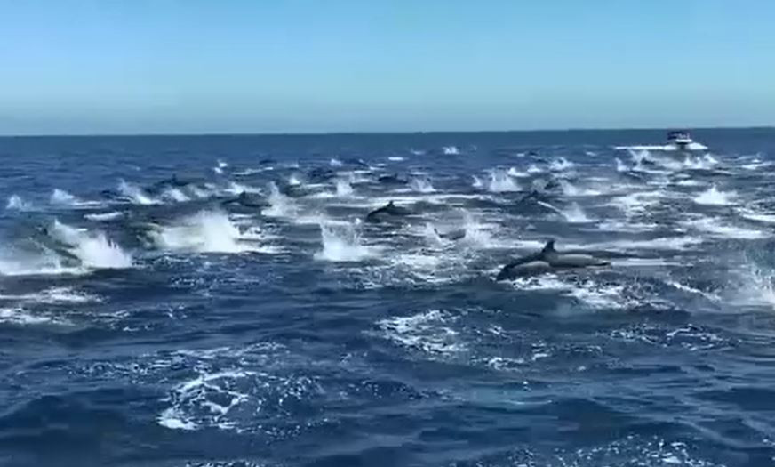 Aproximativ trei sute de delfini au oferit un spectacol impresionant în apropiere ...