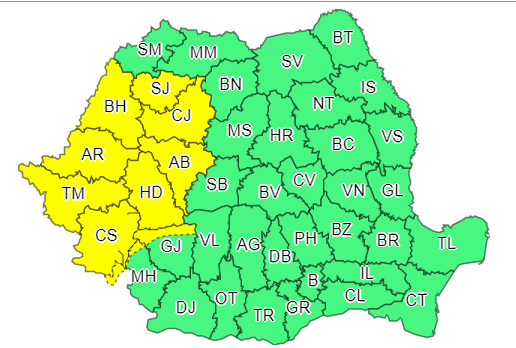 Administraţia Naţională de Meteorologie a emis, vineri, avertizări Cod galben de vreme ...