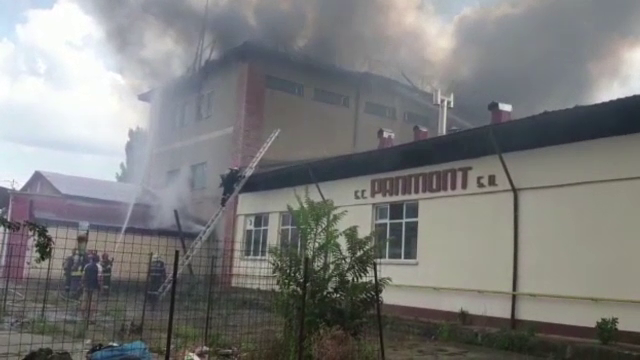 Un incendiu puternic a mistuit luni acoperișul unei fabrici de pâine din Piatra ...