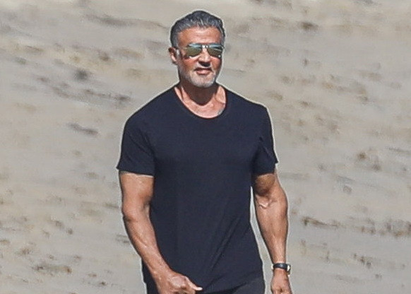 Sylvester Stallone, surprins la o plimbare pe plajă cu soția sa. Cum arată actorul la 74 ...