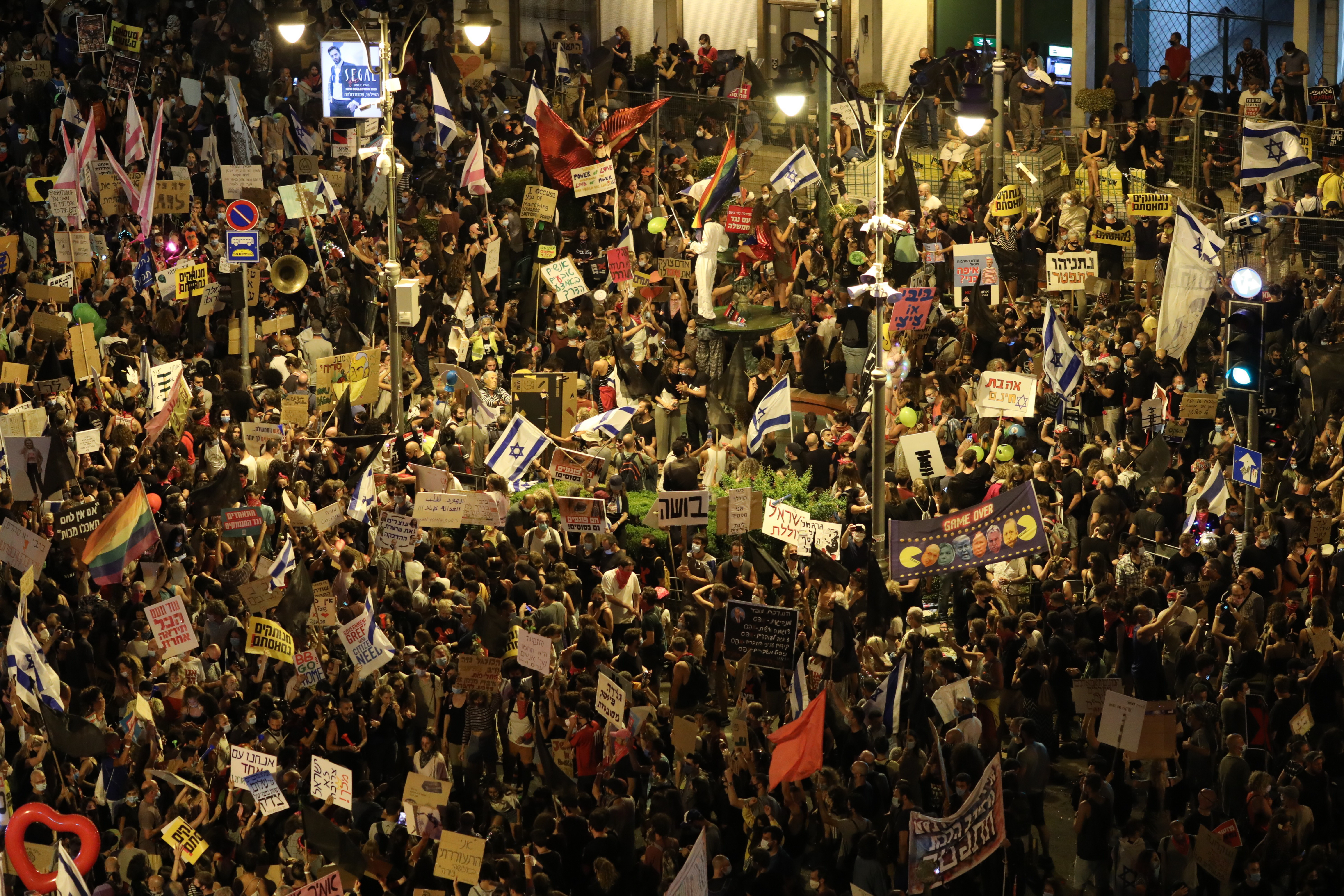 Mii de israelieni s-au adunat sâmbătă în faţa locuinței din Ierusalim a ...