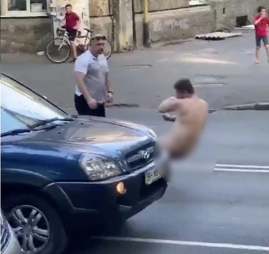 Un bărbat care mergea dezbrăcat pe mijlocul străzii și forța mașinile să îl evite a ...