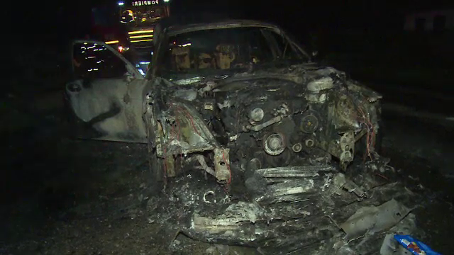 O mașină a ars ca o torță marți noapte pe un drum din Dâmbovița.
