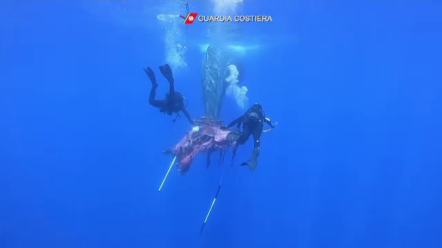 Operaţiune uriaşă de salvare a unui caşalot prins într-o plasă ilegală de pescuit, ...