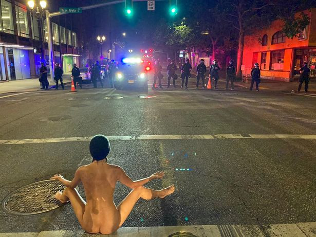 O tânără s-a dezbrăcat și a mers în fața forțelor de ordine, în timpul ...