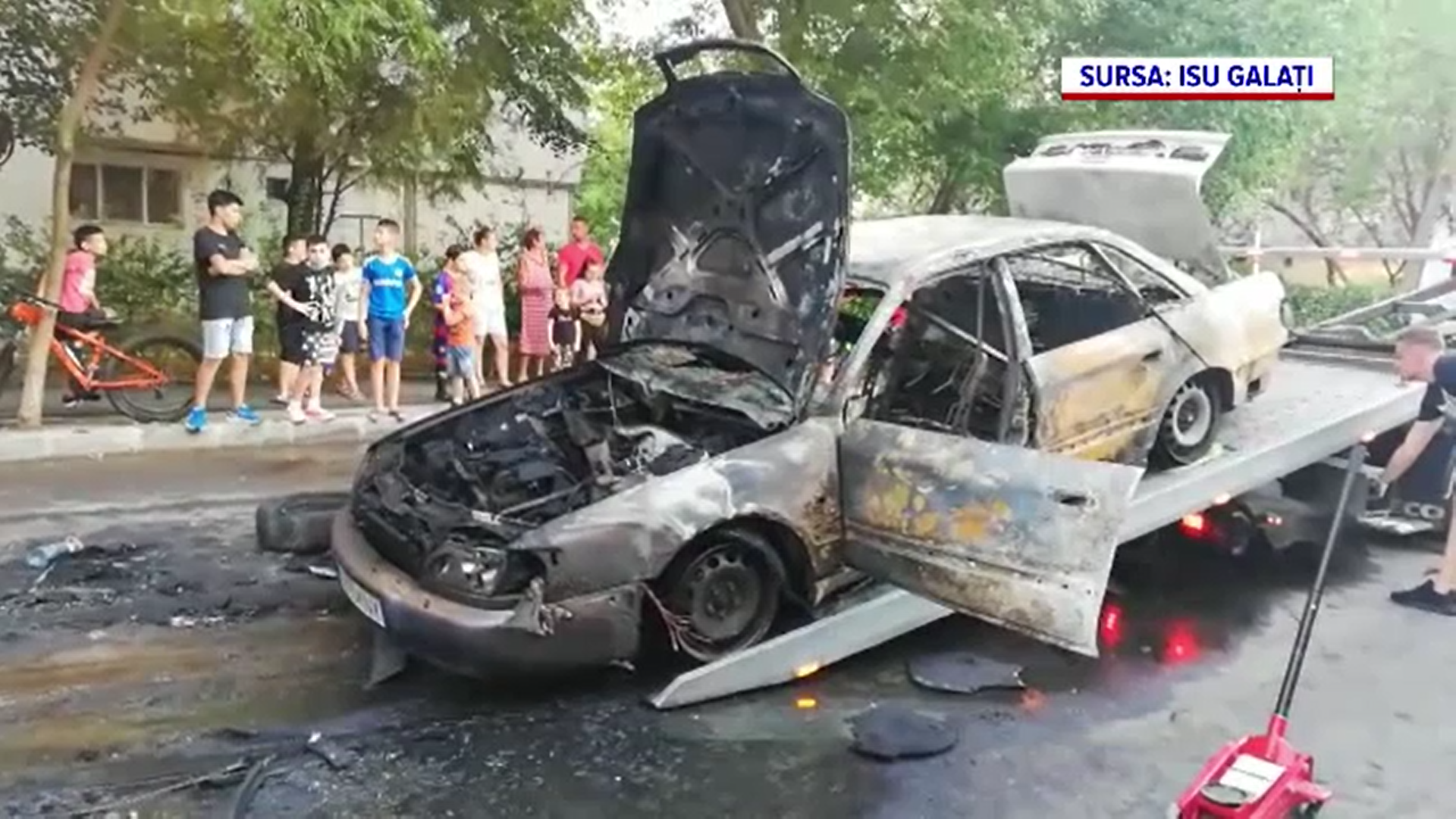 Un incendiu violent s-a declanșat în parcarea unui bloc din Galați. O mașină a ars ...