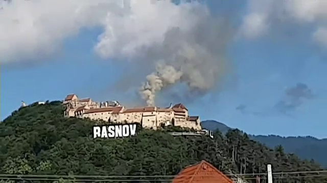 Un incendiu puternic a izbucnit la Cetatea Râșnov. Fumul gros se putea observa de ...