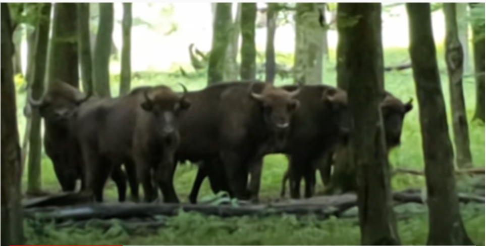 Mai mulți zimbri au făcut un zid viu de apărare în jurul unui pui, pentru a-l ...