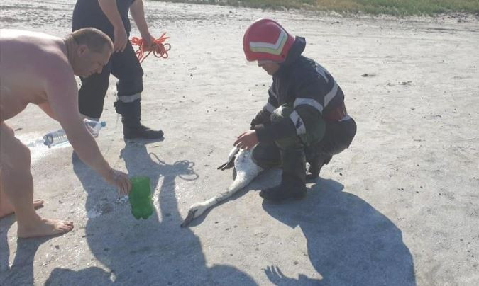 Pompierii din Brăila au salvat o lebădă rămasă captivă în nămol, pe o porțiune din ...