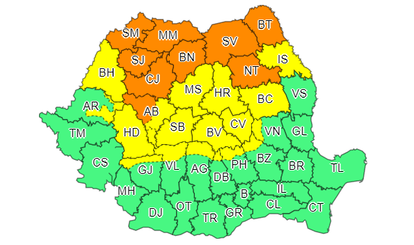 Administraţia Naţională de Meteorologie a emis, duminică, o nouă avertizare Cod ...
