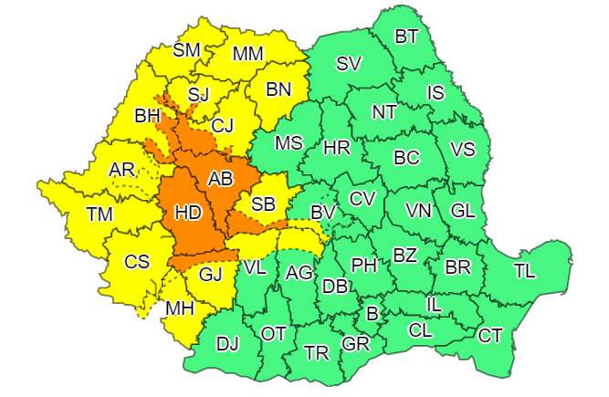 ANM a emis, vineri, o nouă avertizare Cod portocaliu de ploi însemnate cantitativ, ...